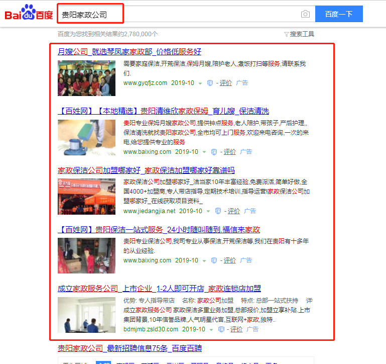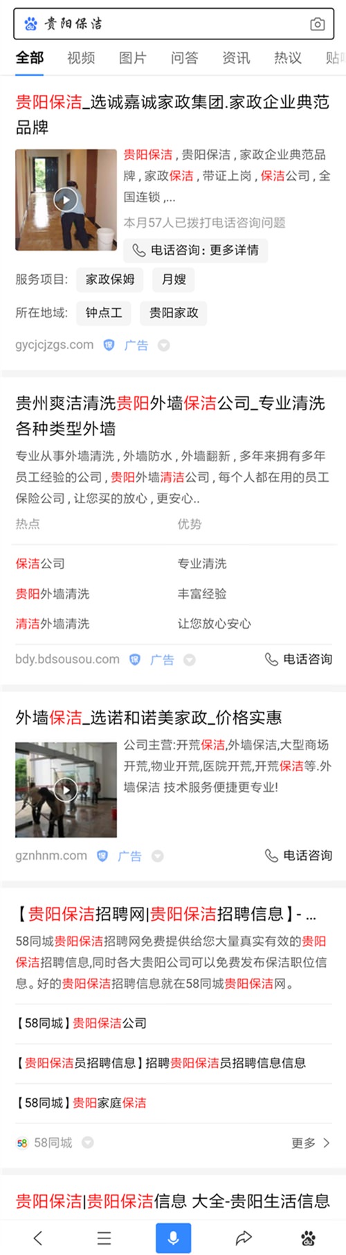 家政保洁展示案例(百度推广)