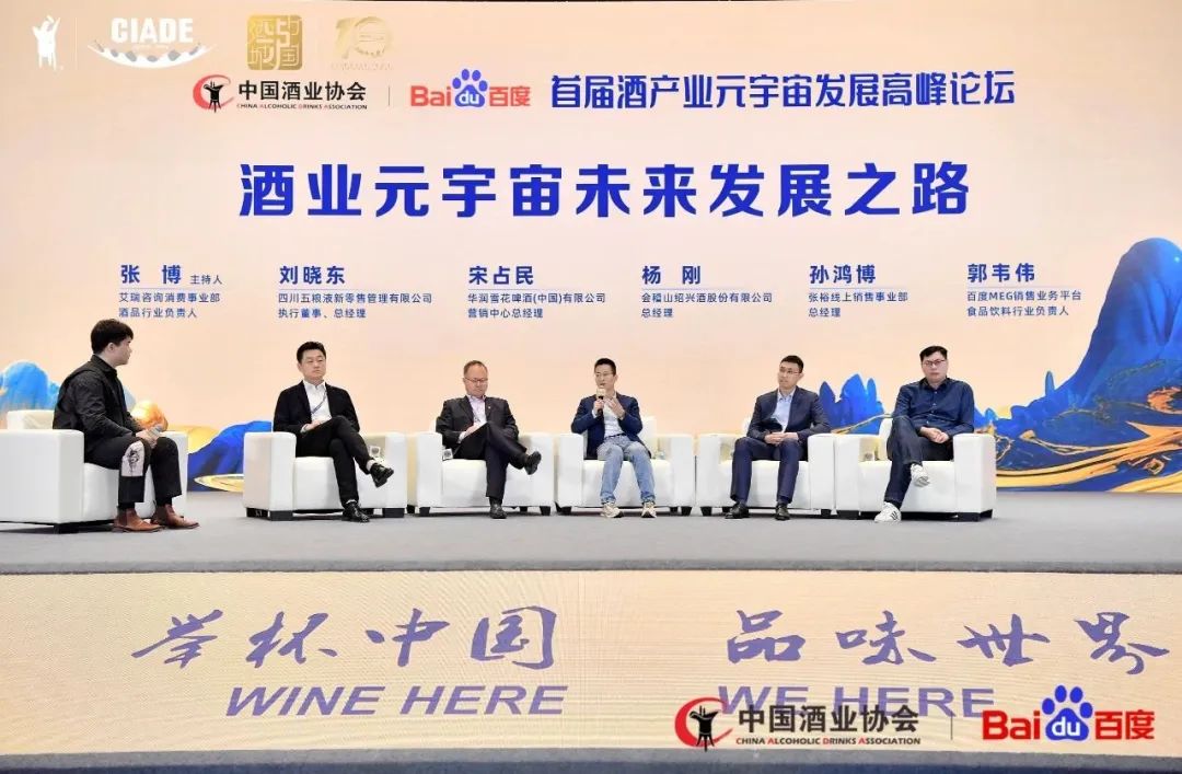 新消费时代下,「科技」将全面赋能新产业、新营销、新生态。会议邀请到四川五粮液新零售管理有限公司执行董事/总经理刘晓东、华润雪花啤酒(中国)有限公司营销中心总经理宋占民、会稽山绍兴酒股份有限公司总经理杨刚、张裕线上销售事业部总经理孙鸿博,联同艾瑞咨询消费事业部酒品行业负责人张博及百度MEG销售业务平台食品饮料行业负责人郭韦伟共同出席以《酒业元宇宙未来发展之路》为主题展开的圆桌对话,从产业升级、营销升级、生态完善等多视角带来行业论见。